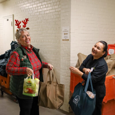 If you’ve ever stopped by The Pit for lunch and noticed the space near the omelet station filled with tables stacked high with groceries, you might have wondered what’s going on. It’s not a pop-up market—it’s a tradition of giving.