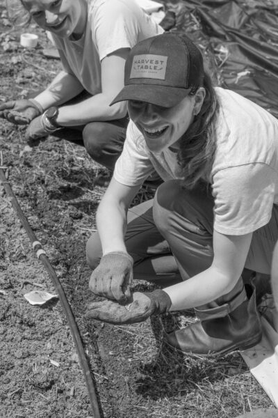 Following a previous visit in June, where the team helped weed garden beds, this return trip focused on planting two full rows of herbs and flowers destined for use in our chef-led dining program.