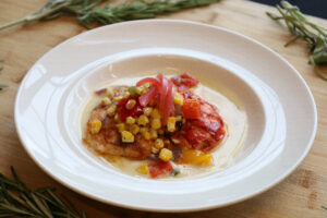 - Fish: Lobster tamales with bell pepper salsa, pan-seared snapper, crispy plantains, smoked tomato butter sauce